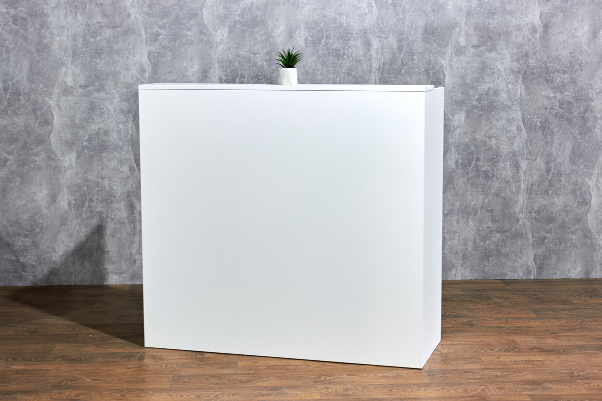 Аренда рецепции / стойки регистрации Деск 120 в Киеве — отличное решение для зоны регистрации на выставках, форумах, ивентах и деловых мероприятиях. Стильный внешний вид, удобная высота и компактные размеры делают её идеальной для встречи гостей, выдачи бейджей или информационного стенда.